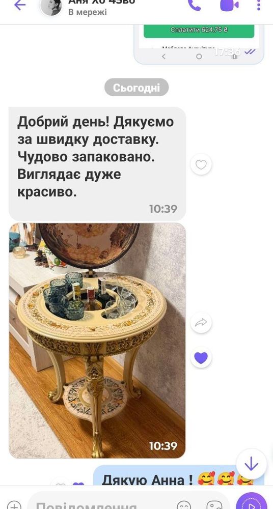 Добрый день! Спасибо Вам большое! Глобус бар фантастически красив! Супер))) я довольна, а мужчина будет счастлив. Все прекрасно! Анастасия 25.03.25 Орильское.