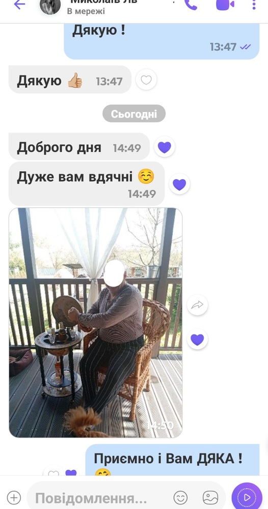 Добрый день. Хотела поблагодарить за мой заказ, вчера получила. Всё пришло целое, ничего не повреждено. Искренне благодарю за качественное обслуживание и за оперативность отправки. Подарок мужу очень понравился, а я осталась довольна своим выбором. Ещё раз вам спасибо. Буду вас рекомендовать. Нина 09.25.2025 Черкасы.